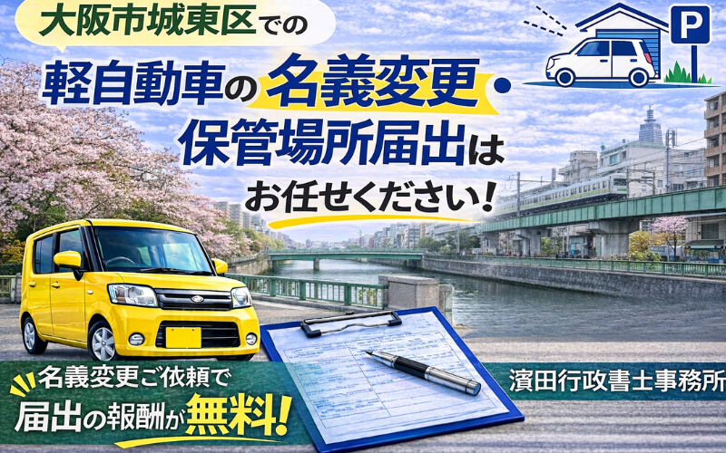 大阪市城東区の軽自動車名義変更・保管場所届出は濱田行政書士事務所へご相談ください。