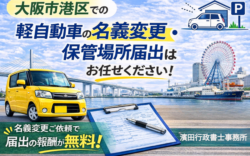 大阪市港区の軽自動車名義変更・保管場所届出は濱田行政書士事務所へご相談ください。