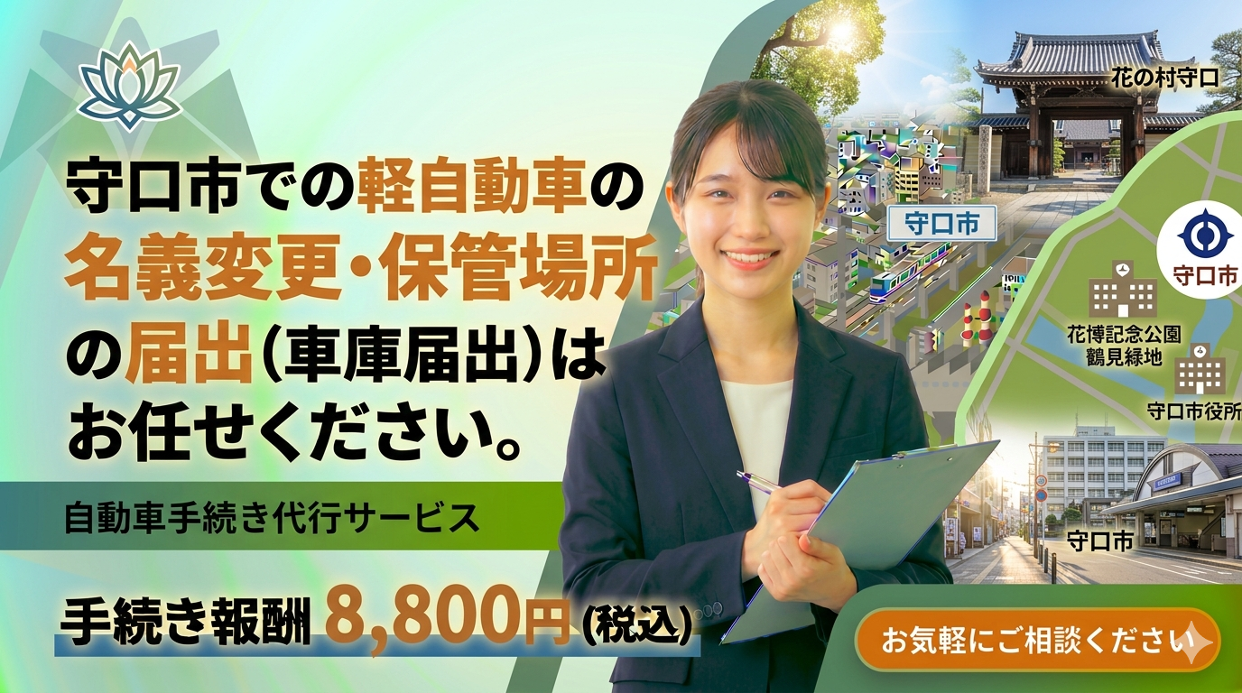守口市の軽自動車名義変更・保管場所届出は濱田行政書士事務所へご相談ください。
