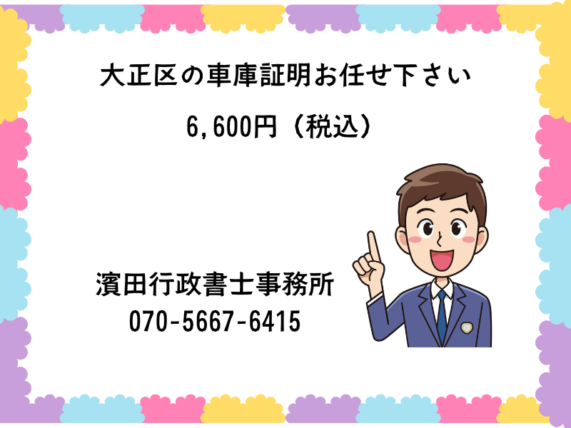 ■ 車庫証明 料金表(大正区)