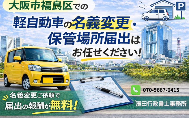 大阪市福島区の軽自動車名義変更・保管場所届出は濱田行政書士事務所へご相談ください。